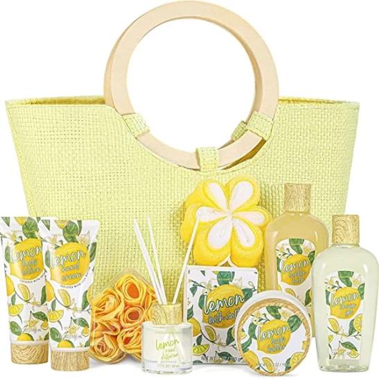 10 Pcs Ladies Spa Gift Sets, Lemon Scent in Beautiful Tote Bag, Pamper Gifts for Women, Female Toiletry Gift Sets, Christmas Gifts, Bath Gift Set