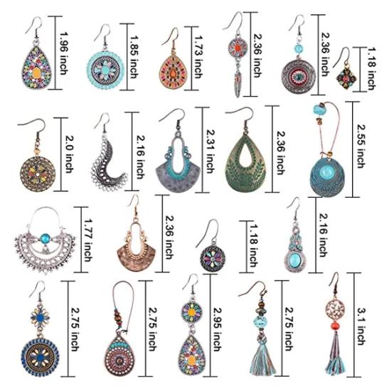 20 Pairs Earring Set for Women, Dangle Earrings Alloy Vintage Earrings