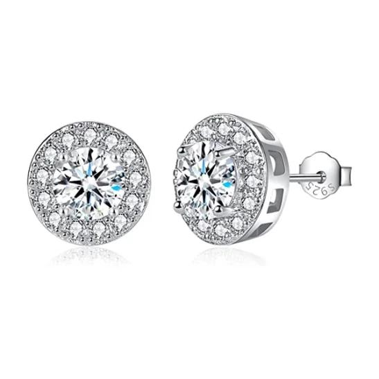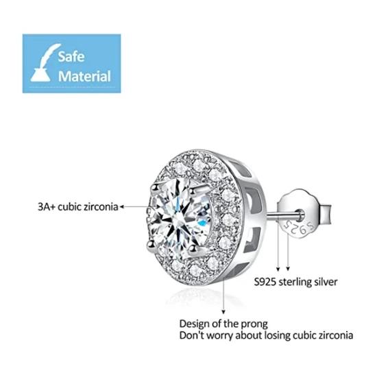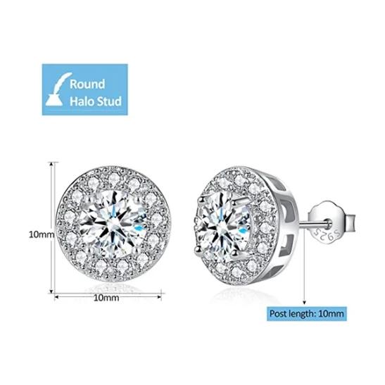 Silver Stud Earrings for Women Girls, Round Faux Diamond Halo Earrings, Rectangle Teardrop Cubic Zirconia Stud Earrings Set - Dainty Bridal Earrings Jewelry for Brides Bridesmaids Wedding