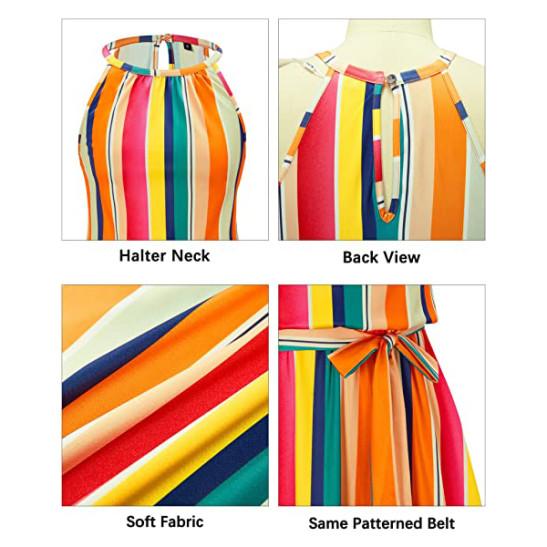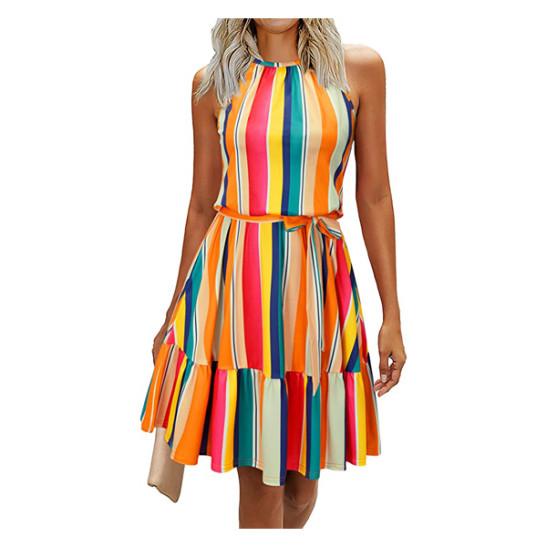 Women's Travelling Dresses Casual Sleeveless Ruffle Sundress Summer Dresswith Pockets